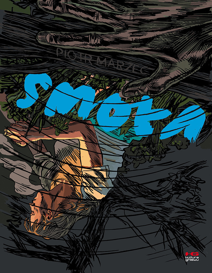 Oszczędna, charakterystyczna kreska – w asyście palety przygaszonych barw (choć nie brakuje również wyrazistych dominant w postaci infernalnej czerwieni oraz ciemnego odcienia niebieskiego) – pomaga w kreowaniu posępnej aury gęstniejącej z każdą kolejną stroną. Bo „Smoła” generuje opresyjny klimat znany z „Blair Witch Project” Daniela Myricka i Eduardo Sáncheza, „Miasteczka Twin Peaks” Davida Lyncha (nie bez kozery na jednym z kadrów widać fragment tablicy reklamującej rzeczoną miejscowość) czy „Martwego zła” Sama Raimiego (choć bez spektakularnego rozlewu posoki).