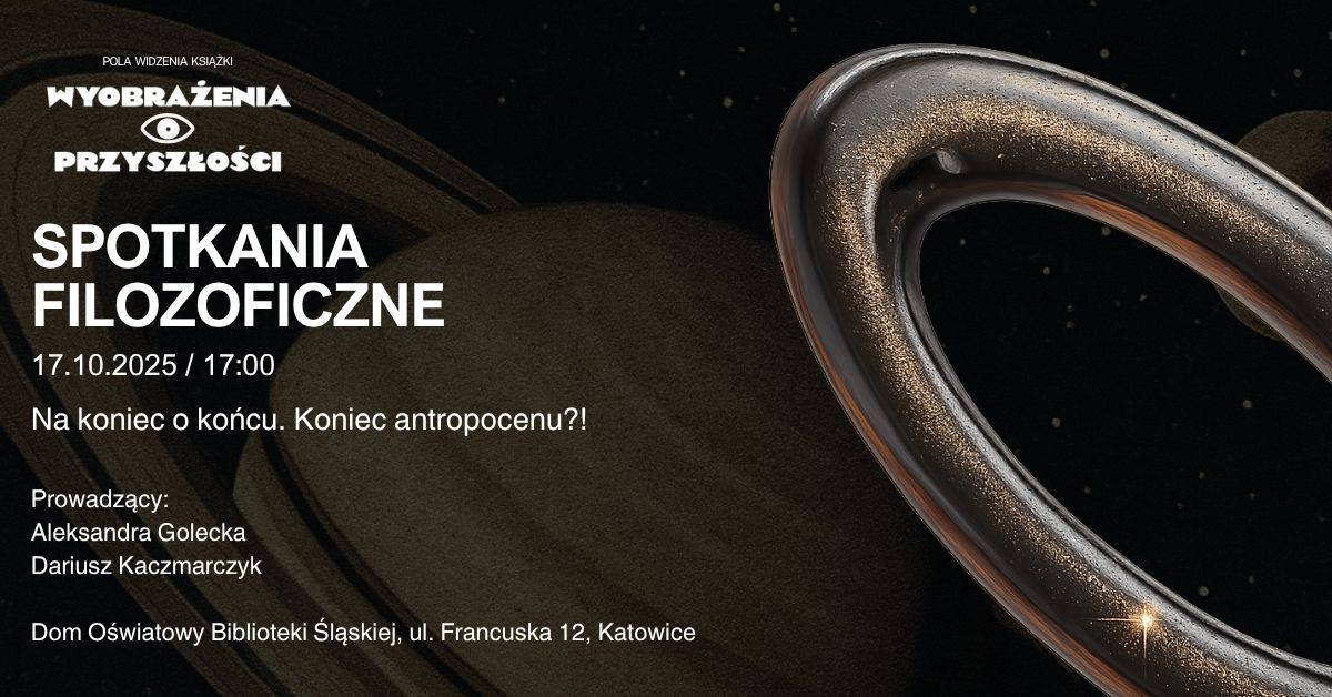 POLECAMY: SPOTKANIE FILOZOFICZNE 'NA KONIEC O KOŃCU. KONIEC ANTROPOCENU?' W RAMACH PROJEKTU 'POLA WIDZENIA KSIĄŻKI - WYOBRAŻENIA O PRZYSZŁOŚCI'