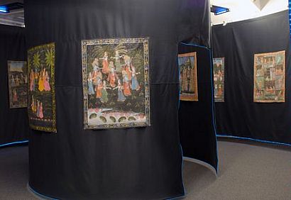 Głębię przekazu obrazuje między innymi fakt, iż widz zostaje zmuszony do wniknięcia w sferę tajemnicy między innymi dzięki użyciu lusterka, inaczej nie da się przeczytać odwróconego pisma. Aby odczytać napisy trzeba wykonać przynajmniej jedno okrążenie po zewnętrznym kręgu wystawy. Nawet osoba o dużej podzielności uwagi nie jest w stanie równocześnie obejrzeć obrazów, zatem musi obejść wystawę dookoła po raz drugi. Wśród obrazów znajdują się między innymi przedstawienia: Kriszny w objęciach Radhy, w tańcu, z gopi, kradnącego ubiory wieśniaczek, czy walczącego z czaplą. Boską moc Kriszny podkreśla zwielokrotnienie jego postaci zastosowane w niektórych gwaszach. Na jego boskość wskazuje też niebieski kolor postaci Kriszny. Utrzymane w jednym stylu płótna znajdują się zarazem w wewnętrznym i zewnętrznym kręgu – po raz kolejny widz jest zmuszony poruszać się w koło. Jako, że wewnętrzna część wystawy, skonstruowana w formie okręgu, kręci się, wszystko zaczyna wirować jak podczas tańca. Oglądający, podobnie jak wierni uczestniczący w misterium raslila jest wciągany coraz głębiej w wirujące kręgi. W samym centrum ekspozycji znajdują się maski Kriszny oraz Radhy, które również poruszają się. Towarzyszy im przedstawienie zaślubin boskiej pary, które w rytuale było umieszczane w wewnętrznym kręgu. Przebywający we wnętrzu wystawy ma wrażenie bycia w świątyni: otacza go tajemnica, mistyczność, a równocześnie wszystko zdaje się być precyzyjnie obliczone i symetrycznie umiejscowione.