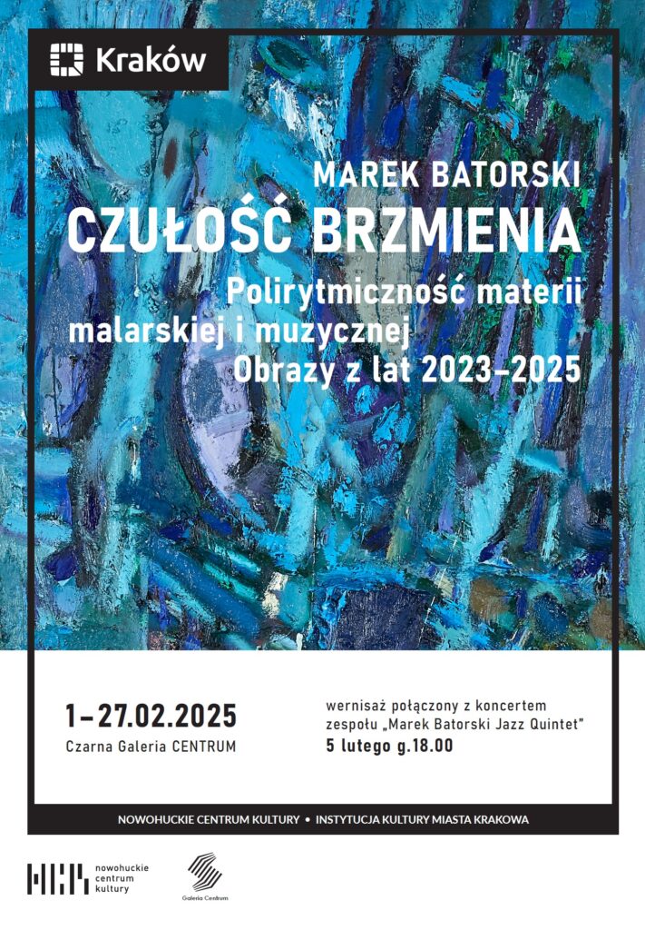„Czułość brzmienia. Polirytmiczność materii malarskiej i muzycznej. Obrazy z lat 2023-2025”. Marek Batorski. 1 lutego–23 marca 2025. Nowohuckie Centrum Kultury.