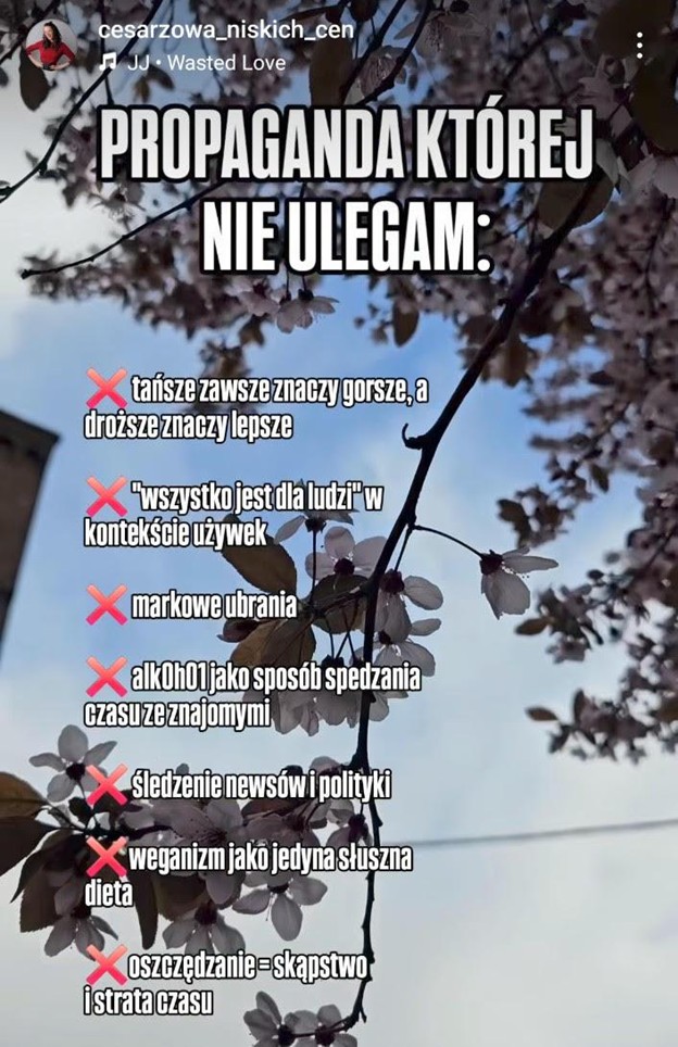 Screen rolki z profilu @cesarzowa_niskich_cen, profil na dzień 27.05.2025 ma 50.1 tysięcy obserwatorów.