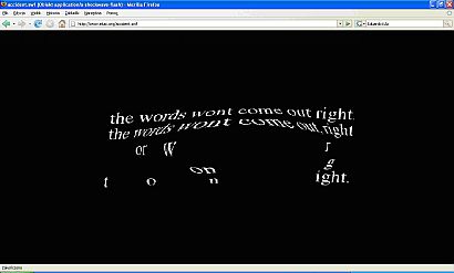 „Accident” (1994) to poemat multimodalny wykorzystujący możliwość technologii pętli oraz swobodnego łączenia dźwięku, tekstu i animacji. Rozpoczyna się słowami „the words won’t come out right”. Fraza ta jest kilkakrotnie powtarzana, a każde powtórzenie zakłada jej postępujące zniekształcenie poprzez rozmycie ostrości obrazu oraz transformację polegającą na usunięciu niektórych liter. W istocie przekaz werbalny jest tu nieustannie zakłócany – zarówno w warstwie dźwiękowej (szumy), jaki i wizualnej (nieostry, skaczący obraz). Właściwy tekst wiersza brzmi „the words won’t come out right, or wrong tonight”, jakkolwiek w całości trudno go uchwycić. Poemat wydarza się, przekształca, zniekształca i zanika na oczach Internauty. Poddając się hipnotycznemu oddziaływaniu zarówno dźwięku, jak i obrazu odbiorca staje się w istocie świadkiem multimodalnej dekonstrukcji poematu. Właściwie należałoby mówić tu o swoistej grze pomiędzy dekonstrukcją dzieła jako przedmiotu semantycznego, a re-konstrukcją jego oscylujących sensów podejmowaną w akcie aktywnego odbioru. Jak podkreśla Kac „Accident” to wiersz o „wypadkach w języku”, o językowych nieporozumieniach, ale także o tym, że słowa stają się zbędne „gdy kochankowie łączą się w uścisku” (tamże, s. 57).