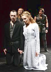 Matylda Podfilipska to aktorka wprost wymarzona do roli wykształconej w klasztorze Argenteuil Heloizy. Pomimo całej subtelności środków wyrazu, ale jakże czystych i szlachetnych, oglądamy bohaterkę nie pozbawioną siły i mądrości. Aktorka przepięknie potrafi operować najmniejszym gestem, spojrzeniem, a jej sposób bycia na scenie to kwintesencja szczerej prawdy i naturalności. Jej Heloiza, zarażona zapałem Abelarda, próbuje walczyć w obronie równouprawnienia kobiet, o ich prawo do wykształcenia, a także do miłości nie usankcjonowanej związkiem małżeńskim. To naprawdę piękna i wzruszająca rola. Niezwykle wyrazistą postać tworzy w toruńskim spektaklu także Marek Milczarczyk jako Fulbert, stryj Heloizy, który najpierw prosi, by Abelard udzielał jej prywatnych lekcji, a potem przyłapuje kochanków i doprowadza do wykastrowania najpopularniejszego nauczyciela teologii w Paryżu. Aktor znakomicie oddaje zakłamanie i małość człowieka opętanego żądzą zemsty, dla którego wybaczenie i miłość nie istnieją. Na osobne omówienie zasługuje rola Bernarda z Clairvaux w jakże wielowymiarowej interpretacji Sławomira Maciejewskiego. To przykład na to, jak ogromne możliwości tkwią cały czas w aktorstwie kreacyjnym, coraz rzadziej spotykanym we współczesnym teatrze. Maciejewski po raz kolejny zmienił się nie do poznania. Ale pasji i nieprzejednania jest w nim za dwóch. Niczym ideolog, bezkompromisowy bojownik polityczny walczy z wiarą Abelarda w ludzkie sumienie i rozum, bo dla niego wiara jest aktem łaski od Boga. Tylko jak na nią zasłużyć?!