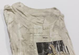 Częściowo zamalowane wycinki z amerykańskich gazet na kolejnym obrazie artysty, spowite subtelną mgłą bieli, sugerują chroniczne zmęczenie wzroku, chęć natychmiastowego odpoczynku. Jednakże wyzwalający letarg po prostu nie chce nadejść. Głowa nie pozwala zasnąć, dręczona przez nieustannie kołatające się w niej lęki i obawy, szukające ujścia w insomnii i bezcelowej wędrówce. Kolejna praca: pognieciona tkanina, brutalnie zakonserwowana w kleju, to wyeksploatowany przez noc podkoszulek, w którym do tej pory, być może, obecny jest zapach spoconej skóry, resztek wody toaletowej, intymnej bliskości, a przede wszystkim własnego legowiska, będącego symboliczną przestrzenią zmagań z własnym rozumem i wiercącym się niespokojnie ciałem.