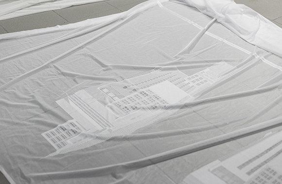 Czy wystawa „Widmo” przywraca pierwotny, utracony kształt miastu czy jest po prostu nostalgiczną, sentymentalną wędrówką po miejscach i historii, na których wspomnienie zakręci się w oku niejedna łza? Ekspozycja na pewno nie stanowi dosłownego odtworzenia miejsc – jest to raczej artystyczna wariacja na temat ich zniknięcia, śladu, który po nich pozostał. Bystry widz dostrzeże w instalacji Alicji Bielawskiej „Gdy znikną detale, pozostanie falowanie przestrzeni”(2016) znajomo wyglądającą posadzkę z Pałacu Ślubów, stanowiącą próbę zrekonstruowania tego miejsca, jego atmosfery, architektonicznej formy. Tymczasem Karolina Marusińska w wideo „Powidok” (2016) przedstawia aktualny stan przestrzeni, gdzie stał dawny budynek Muzeum Śląskiego, wzniesiony w latach 1936–1939 w Katowicach, zaprojektowany przez Karola Schayera. Jego budowa zakończyła się tuż przed II wojną światową, która uniemożliwiła działanie muzeum. W marcu 1940 roku hitlerowcy postanowili zburzyć ledwo co wzniesiony gmach, który ostatecznie legł w gruzach cztery lata później. Pozostawiono wtedy „przy życiu” małe mieszkalne skrzydło. Po zakończeniu wojny od początku starano się przywrócić muzeum życie, ostatecznie jednak na jego miejscu wzniesiono w latach 50. socrealistyczny biurowiec. Karina Marusińska postanawia przyjrzeć się tej przestrzeni zza firanki z nadrukowanym wizerunkiem dawnego Muzeum. Powstanie tej realizacji było nie lada wyzwaniem dla artystki, która usilnie starała się znaleźć prywatne mieszkanie z widokiem na przestrzeń byłego Muzeum Śląskiego. Jej działania obfitowały w spotkania z bardzo otwartymi ludźmi, którzy niemal natychmiast postanowili jej pomóc. „Firana jako mgła, błona, złudzenie, iluzja, zamroczenie, filtr innej rzeczywistości, granica jawy i snu…Wszystkie te skojarzenia utwierdzały mnie w przekonaniu, że ten niepozorny przedmiot może stać się nośnikiem dla zobrazowania architektury już nieistniejącej lub nigdy niepowstałej – funkcjonującej jedynie w planach. Firana stanowi granicę pomiędzy światem prywatnym i publicznym. Daje poczucie intymności, ale też umożliwia podglądanie” – opowiada o swojej pracy artystka.