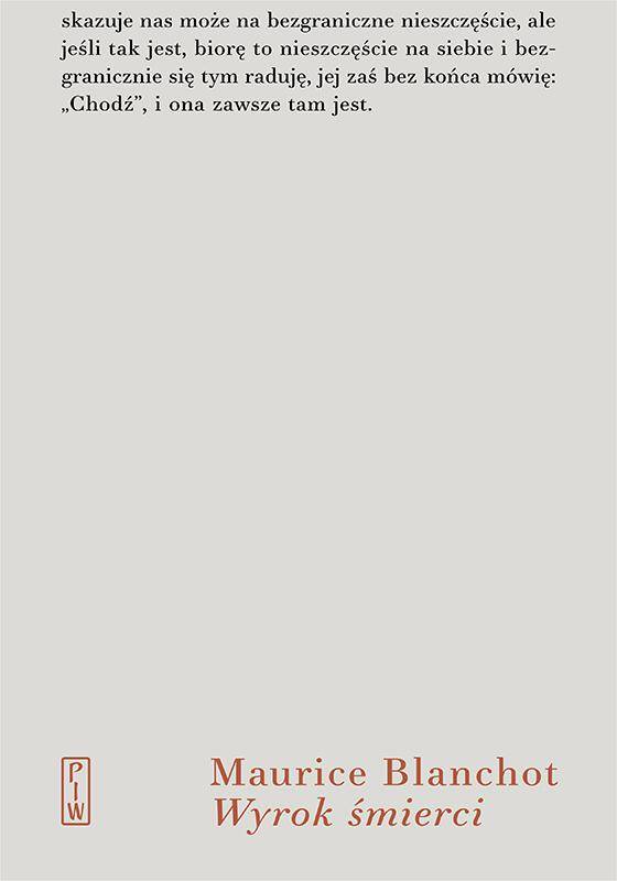 Maurice Blanchot: „Wyrok śmierci”. Przeł. Anna Wasilewska. Państwowy Instytut Wydawniczy. Warszawa 2021.