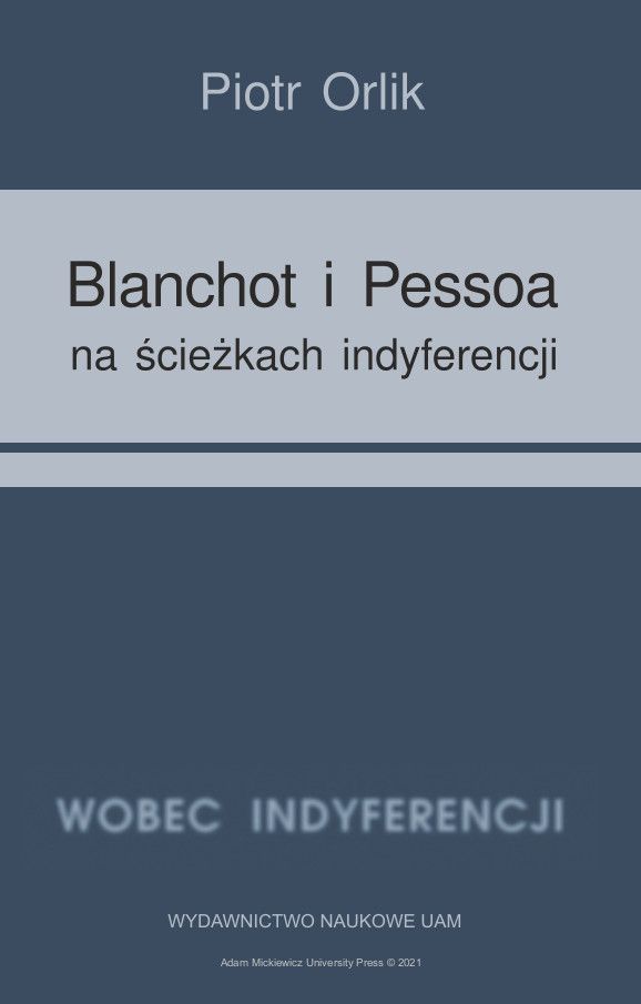 Piotr Orlik: „Blanchot i Pessoa na ścieżkach indyferencji (wyzwania tożsamościowe – retrospekcja indyferencji)”. Wydawnictwo Naukowe UAM. Poznań 2021.