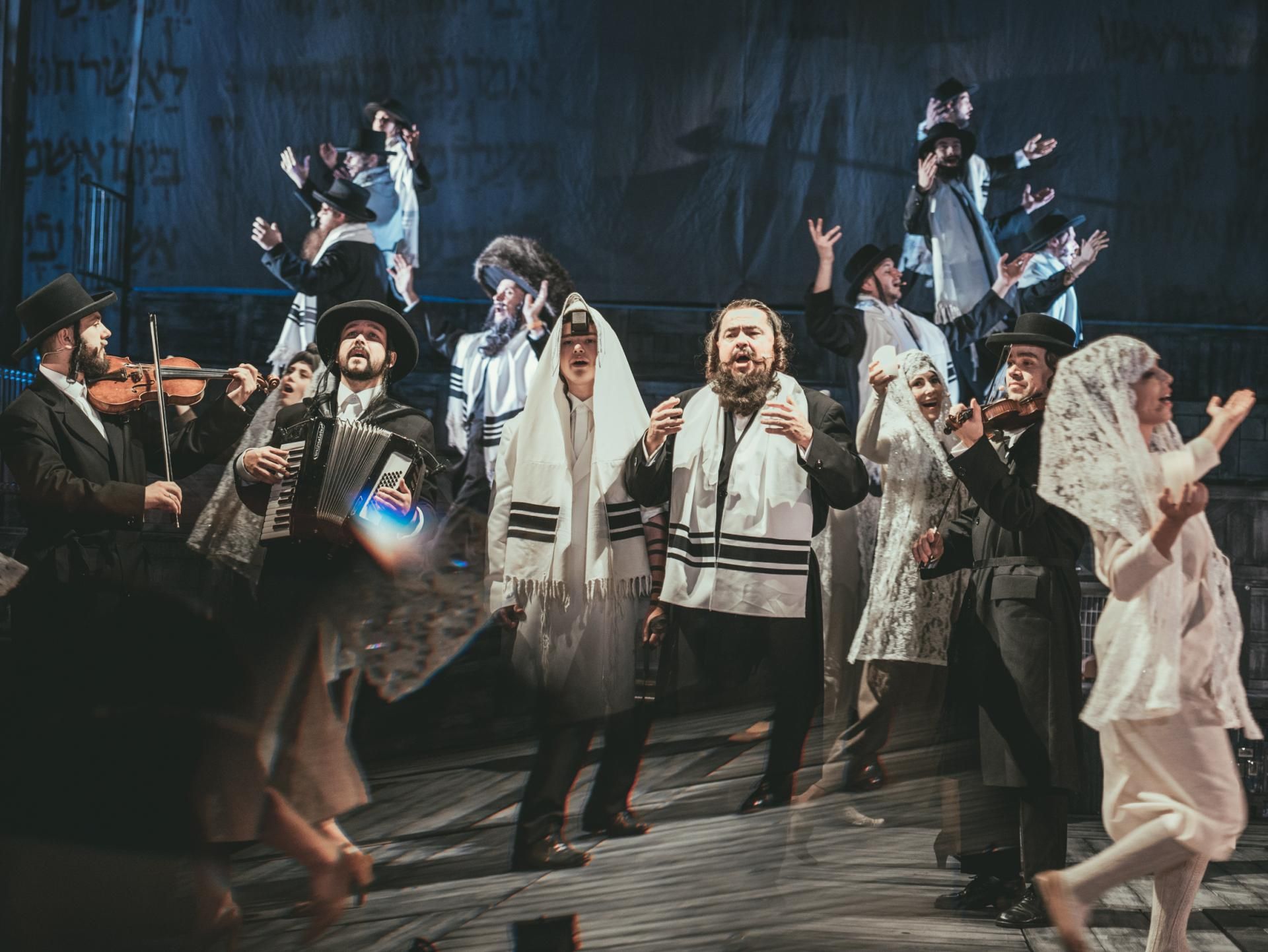 Atmosferę spektaklu buduje znamienna warstwa muzyczna autorstwa Zygmunta Koniecznego, wprowadzająca klezmerskie brzmienia. Istotną rolę odgrywają tu również fragmenty improwizowane na żywo (muzyka akordeonu i skrzypiec). Dzięki temu zabiegowi, czyli bezpośredniej reakcji muzycznej na działania aktorów na scenie, oglądany spektakl za każdym razem będzie nieco inny. Autor choreografii Jakub Lewandowski tworząc ruch do spektaklu postawił na dużą ekspresję cielesną. Starał się być zgodny z tradycją, jeśli chodzi o taniec żydowski, a jednocześnie zaproponował układy choreograficzne, które wnoszą do inscenizacji dużo współczesności.
