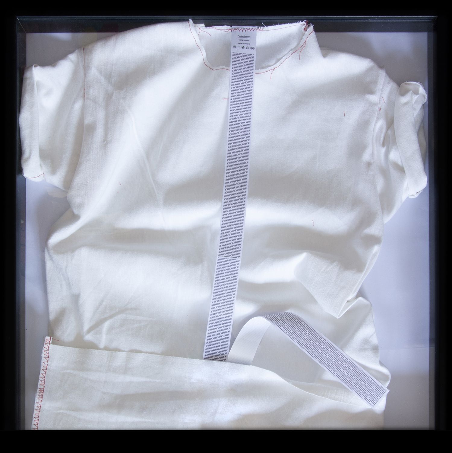 M.S.B.: Z opisu pracy „Metka”: „Do białej płóciennej koszulki doszyłam metkę z pojęciami, które mnie charakteryzują. Hasła, które sama sobie przypisuje są zmiksowane z tymi, które usłyszałam na swój temat od innych. Na długiej powierzchni metki zostały one kilkukrotnie powtórzone. To sprawiło, że metka z krótkiego skrawka tkaniny jest niemalże wstążką, która nas oplata. Ta wstążka się za nami ciągnie i ogranicza ruchy, bo nie wiemy tak naprawdę, kim jesteśmy”. Czy te opinie to było coś, co bardzo poruszyło i powracało w myślach, czy bynajmniej – to raczej zbiór przykładowych sądów?